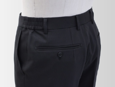 センタープリーツ加工でパンツの折り目も消えにくく、美しいラインを保ちます。 -