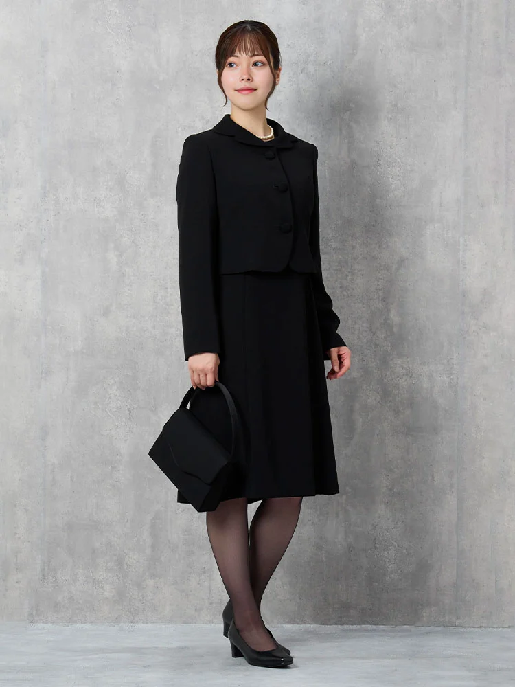 ワンピース・ジャケット・スカートの3点セットで、TPOにあわせた組み合わせで着られます。