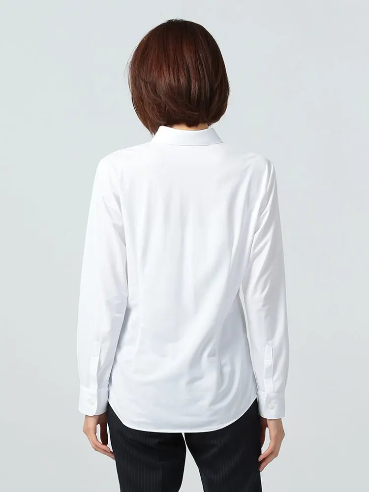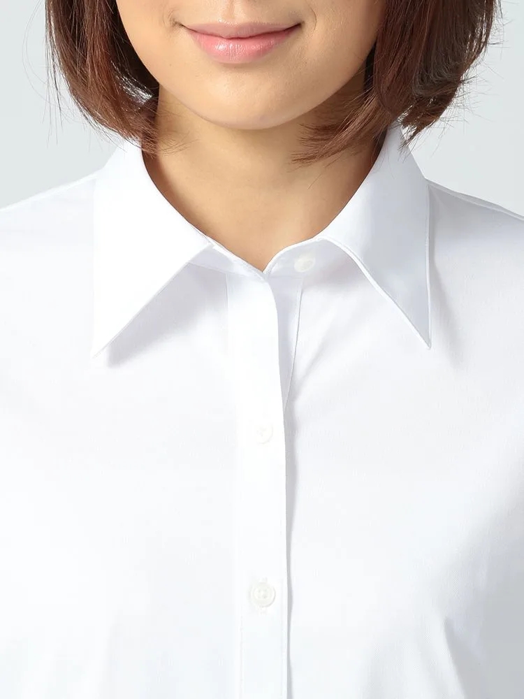 【完全ノーアイロン】長袖 ブラウス i-shirt 白無地 レギュラー アイシャツ 通年【レディース】