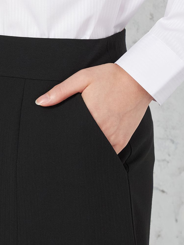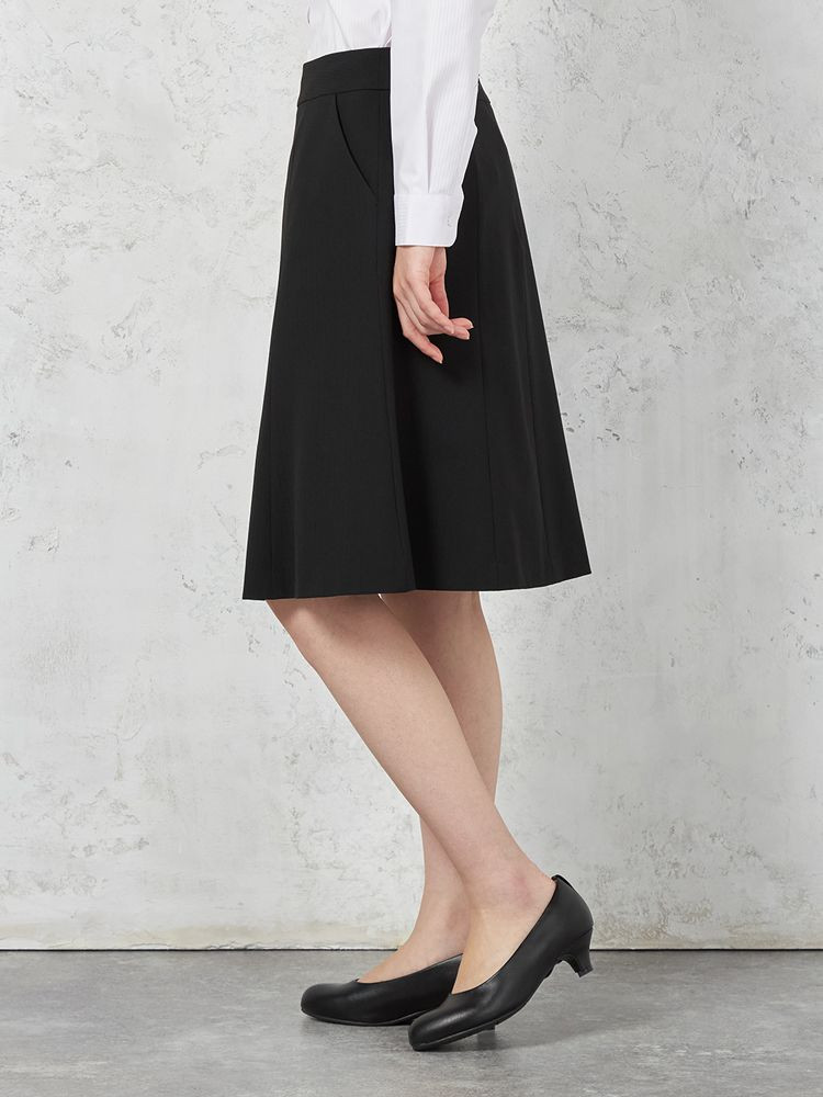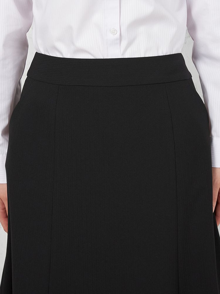 【ウォッシャブル】セミフレアスカート 2WAYストレッチ ブラック シャドウストライプ S&M knights bridge 通年【レディース】