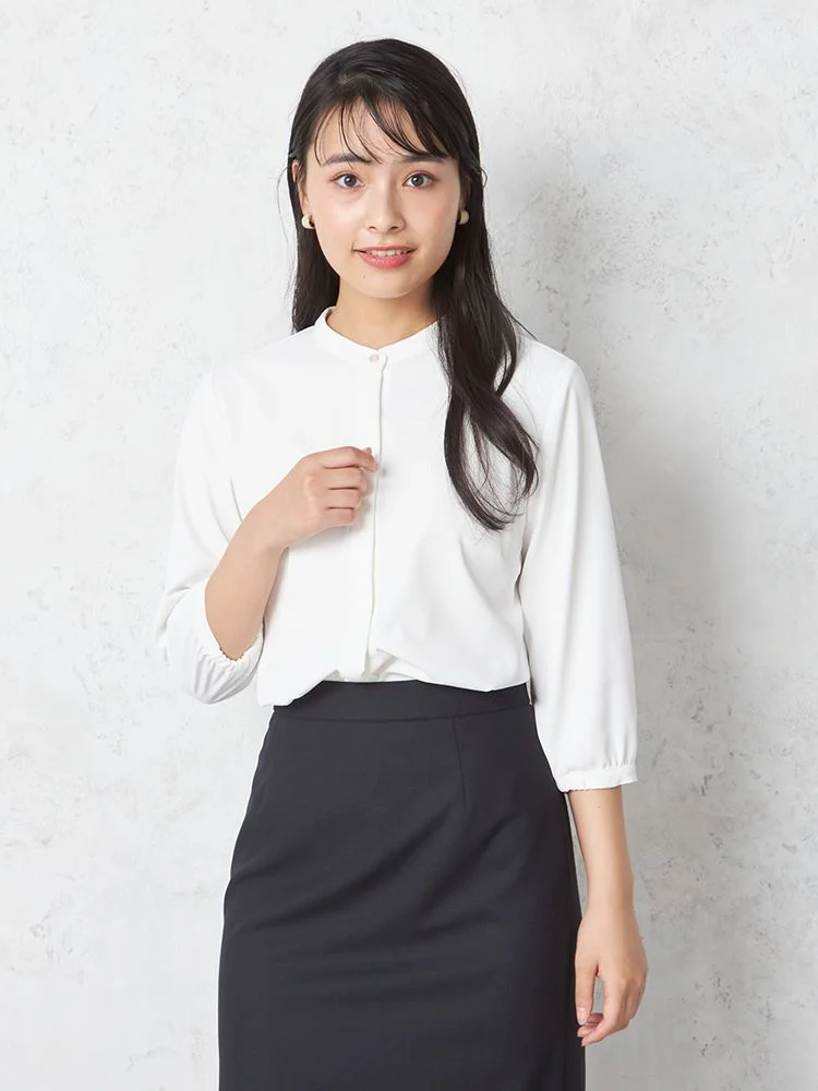 防シワ性に優れ、タテ・ヨコに伸びる2WAYストレッチ素材の7分袖ブラウスです。