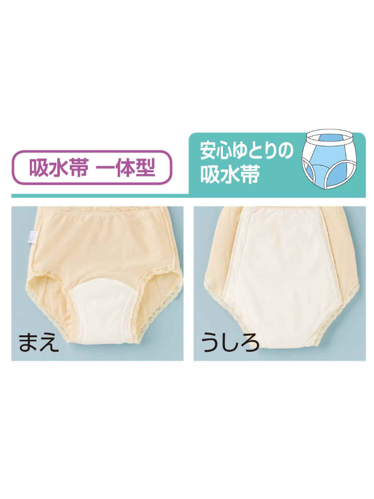下着と吸水帯が一体になっているタイプです。吸水帯で尿漏れをしっかり吸水・拡散します。
