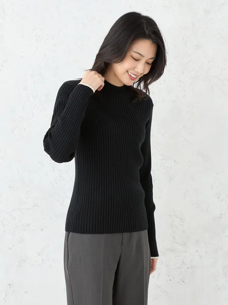 【SOFFICE】抗ピル配色ラインハイネックリブニット カットソー ウォッシャブル 放電 抗ピリング 秋冬