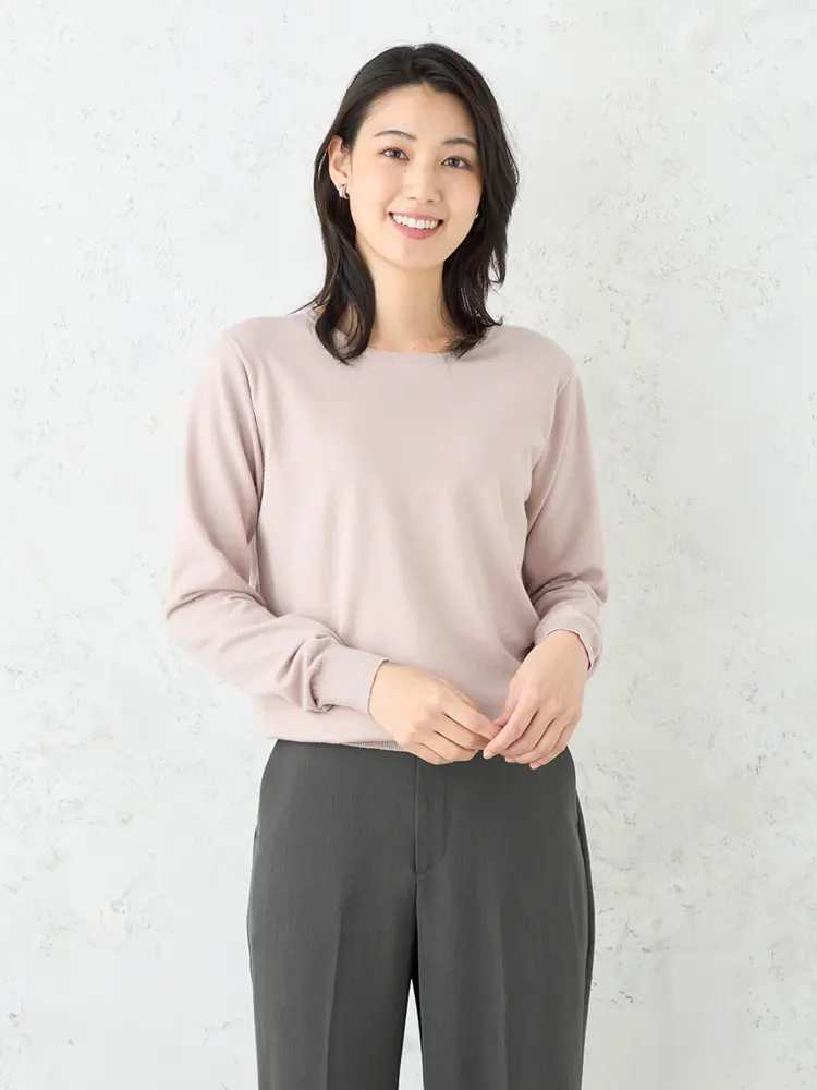 【SOFFICE】抗ピルクルーネックニット カットソー ウォッシャブル 放電 抗ピリング 秋冬