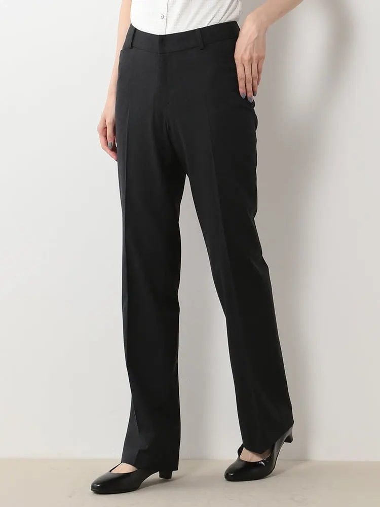【ウォッシャブル】ウィメンズフルレングスパンツストレッチSOFFICEブラック無地通年【レディース】