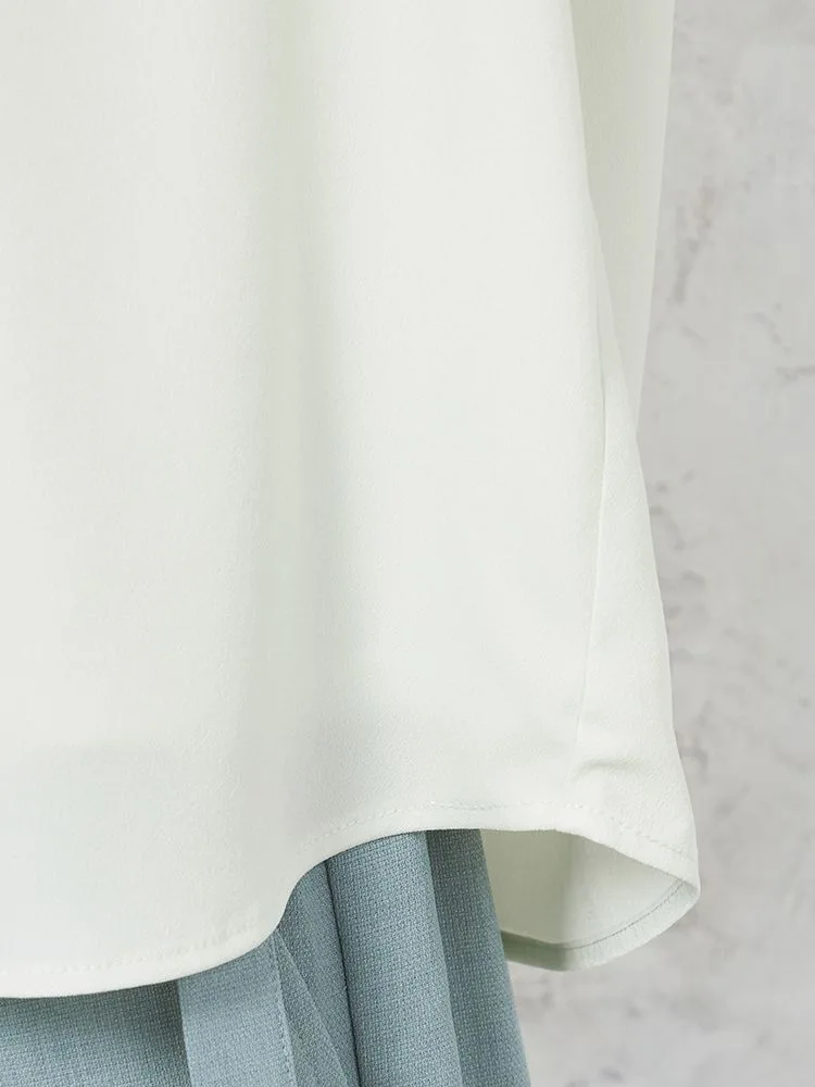 【ウォッシャブル】半袖 ハートネックブラウス 防臭抗菌 透けにくい 無地 SOFFICE 春夏【レディース】(L.グリーン)