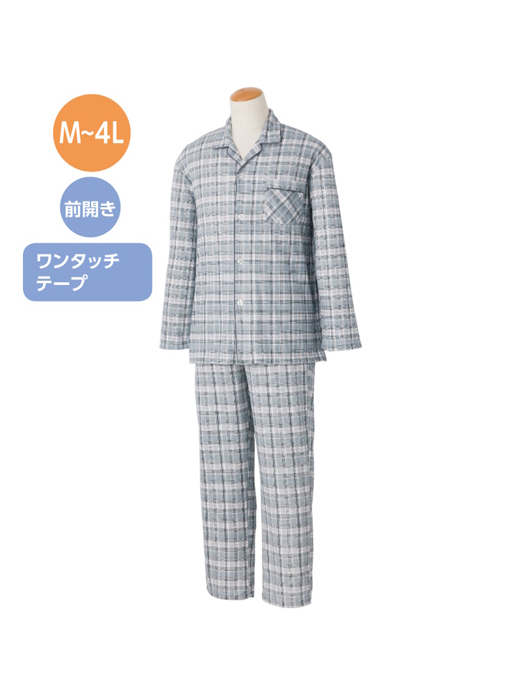 【前開き】【着脱しやすい】ワンタッチパジャマ2/紳士用/メンズ/シニア/高齢者/介護/入院 【CF】(L.グレー)