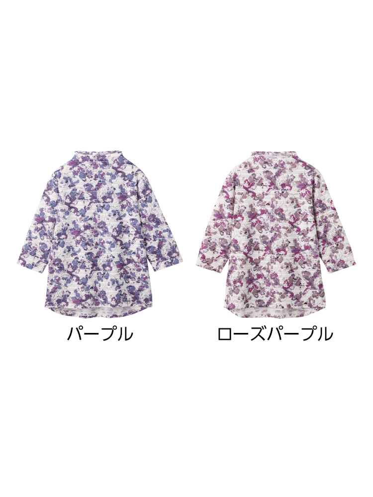 7分袖後ろ長めTシャツ4/婦人用/レディース/ゆったり/おしゃれ/七分袖/シニア/高齢者/おしゃれ 【CF】(パープル系)