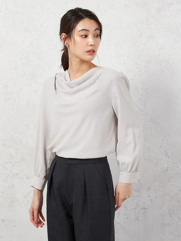 【ストレッチ】ラチネ織 ドレープネックブラウス 9分袖 ウォッシャブル SOFFICE 通年【レディース】