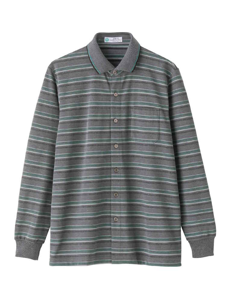 綿混斜め釦ホール前開きポロシャツ/紳士用/メンズ/シニア/高齢者/前開き/ギフト/プレゼント 【CF】(C.グレー)