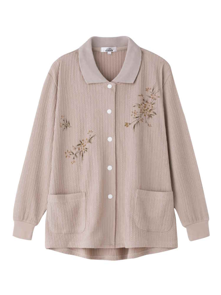 • ブラウン 【前開き】【あったか】 裏起毛スナップ釦ポロカーディ2/婦人用/レディース/高齢者/シニア/秋冬/お出かけ/ギフト/プレゼント 【CF】 | はるやま公式通販