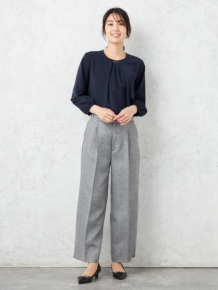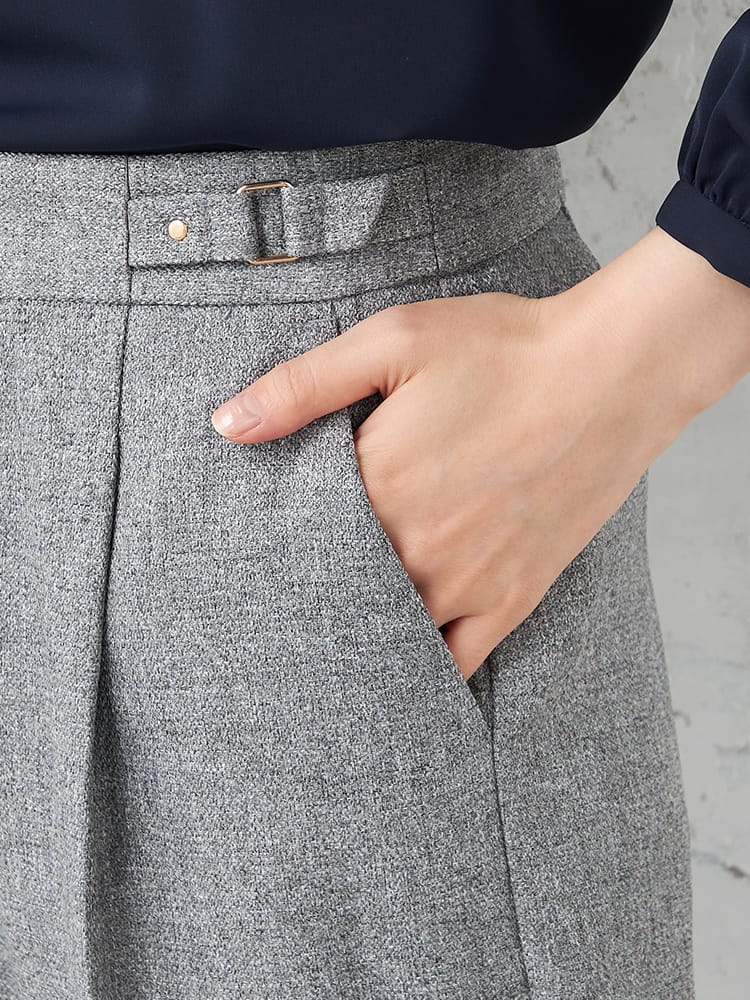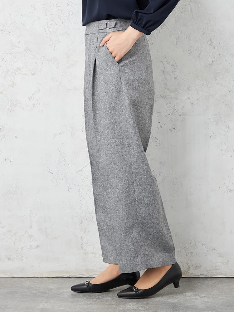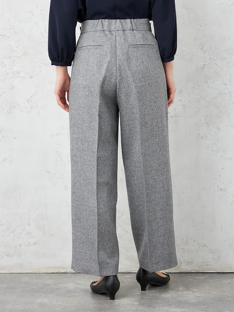 【WALKPLUS】 ツイードサイドポイントワイドパンツ ウォッシャブル 秋冬 【レディース】(L.グレー)