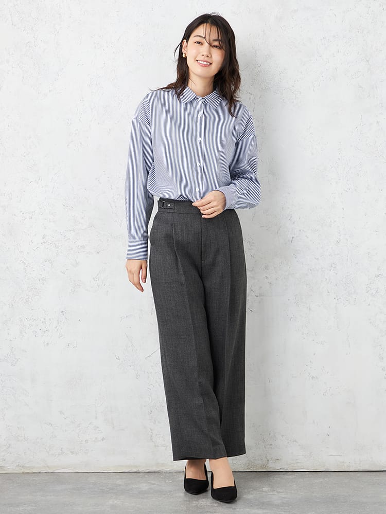 広がりすぎない程よいワイドシルエットで気になる体型をカバーしてくれます。
