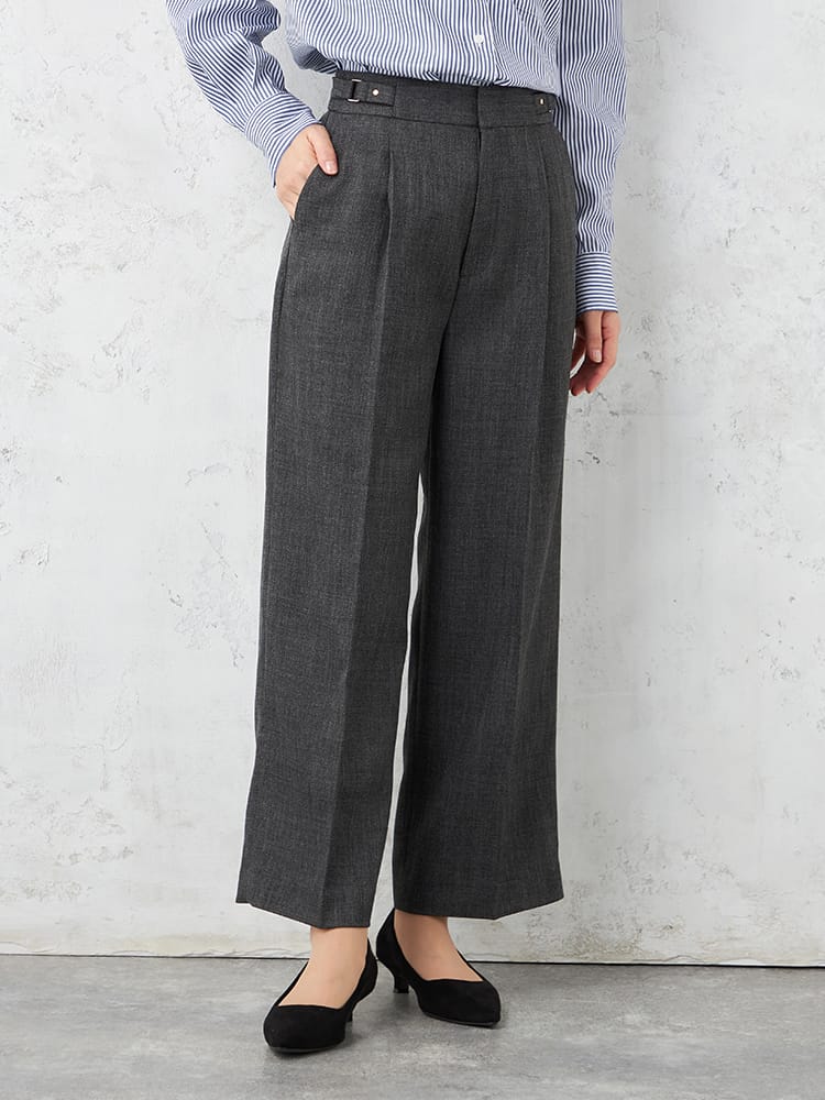 【WALKPLUS】 T/Rトロサイドタブワイドパンツ ウォッシャブル 通年 【レディース】