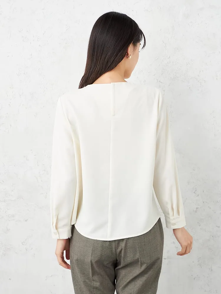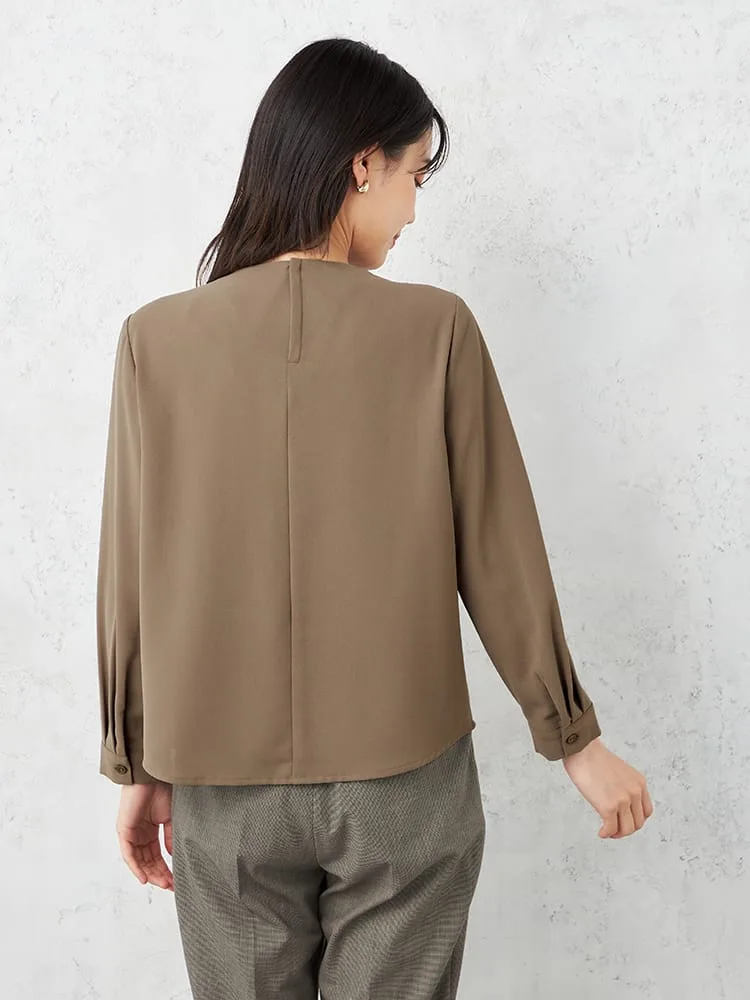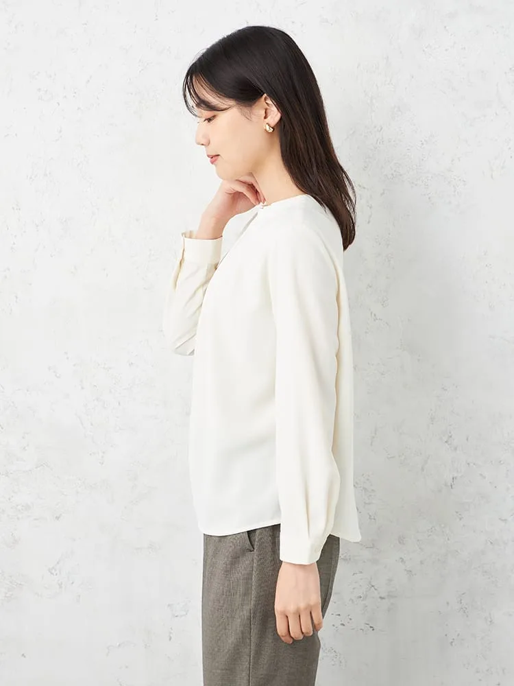 【ウォッシャブル】ブラウス長袖クルーネックプルオーバータックブラウス透けにくいストレッチ無地SOFFICE通年【レディース】