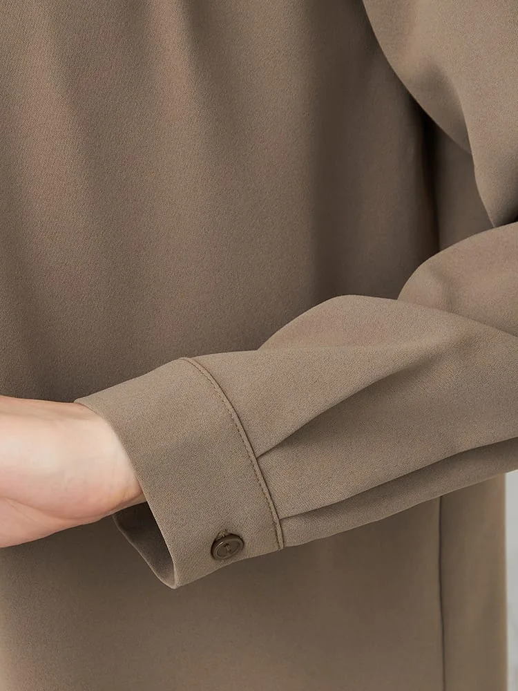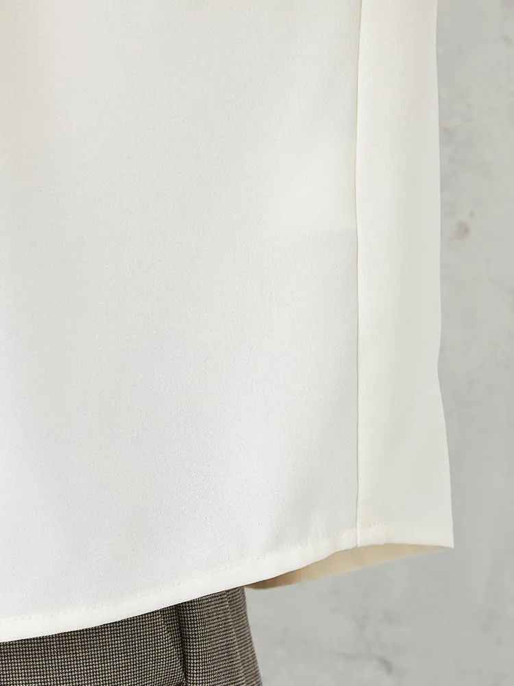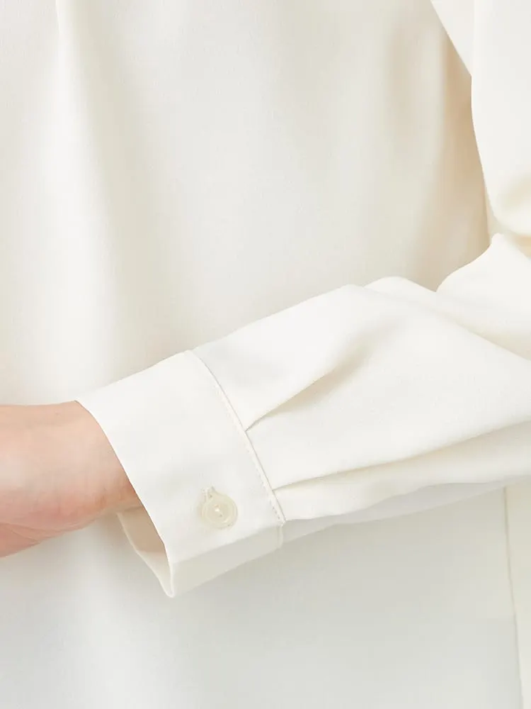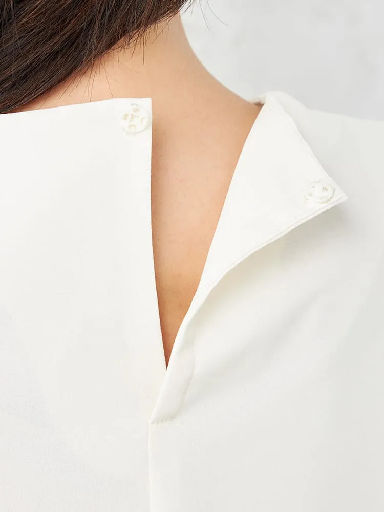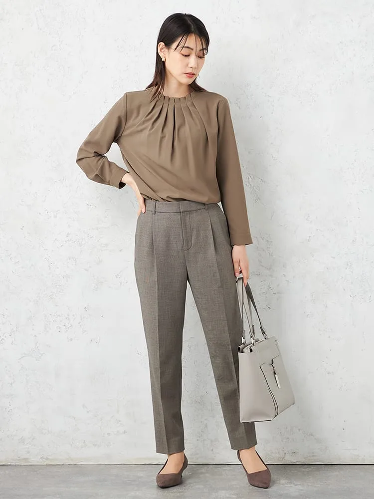 衿のタックデザインにこだわった主役級のブラウスで、ジャケットインはもちろん、1枚でも着映えします。
