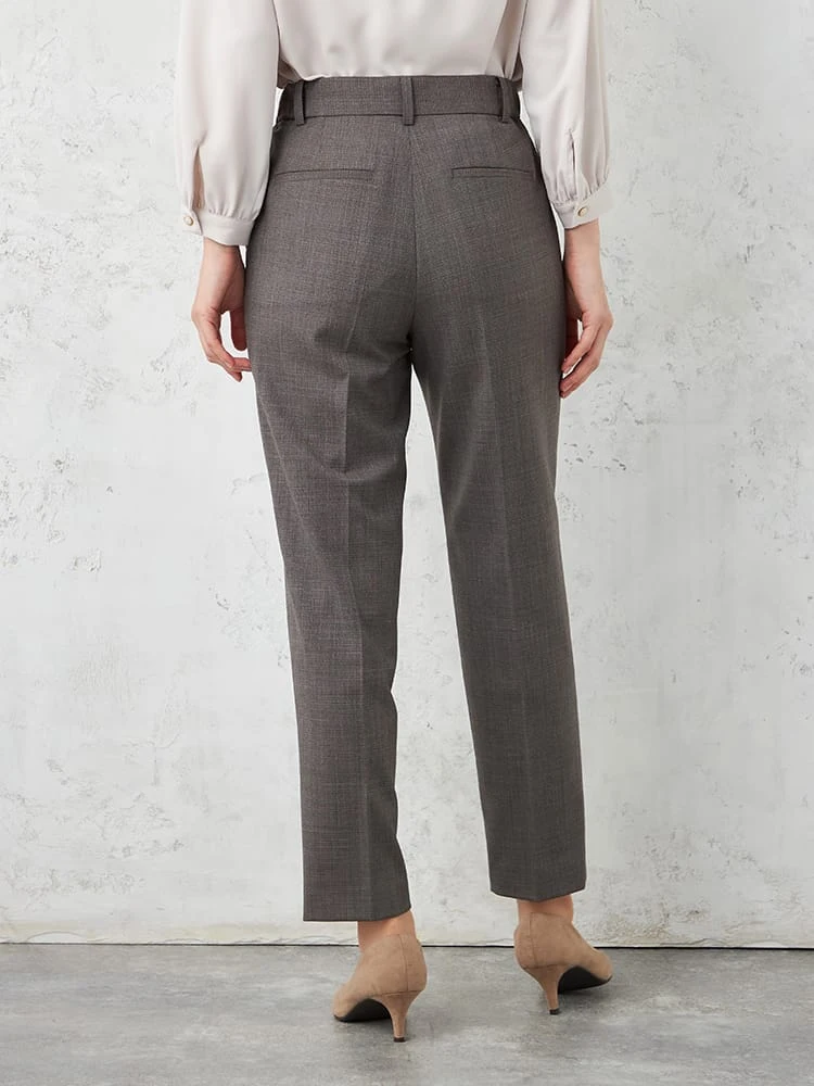 すっきりと見えるバランスにこだわったテーパードパンツ。