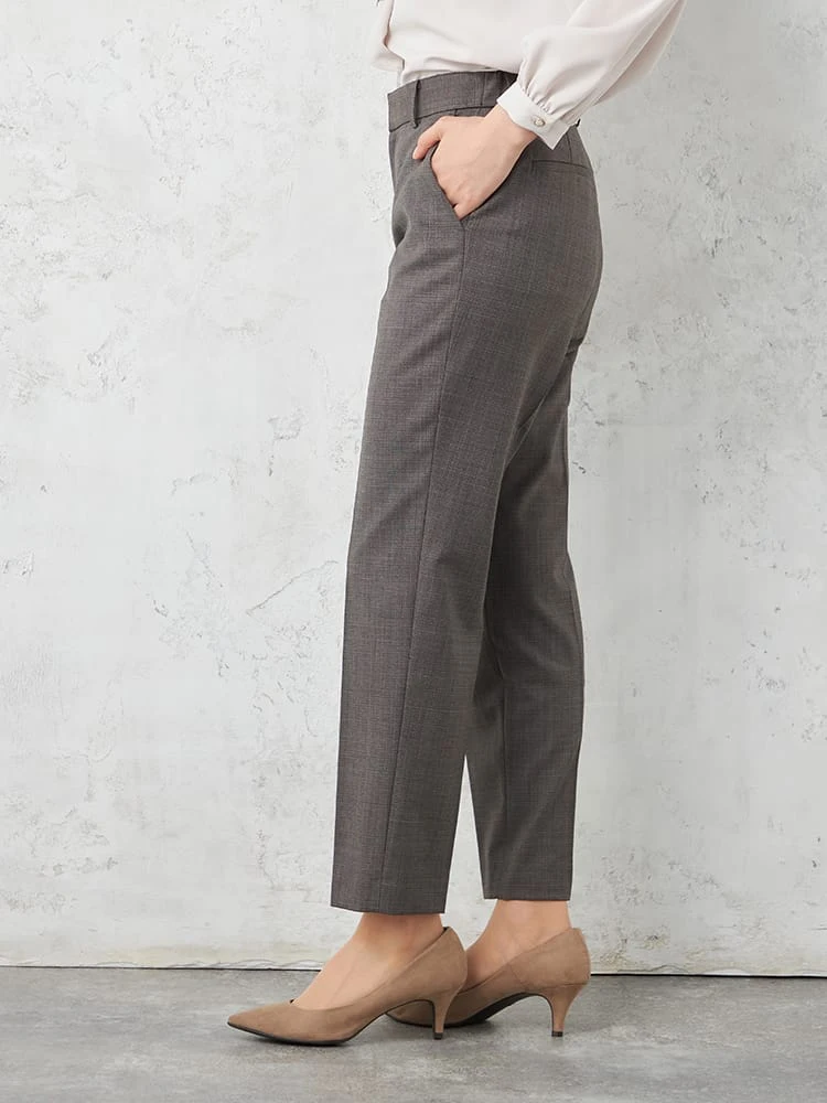 【ストレッチ】パンツストレート【REDAFLEXO】ストレッチインベルグレーチェックSTOVEL&MASON秋冬【レディース】
