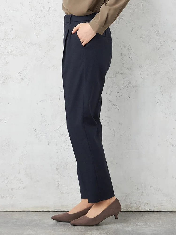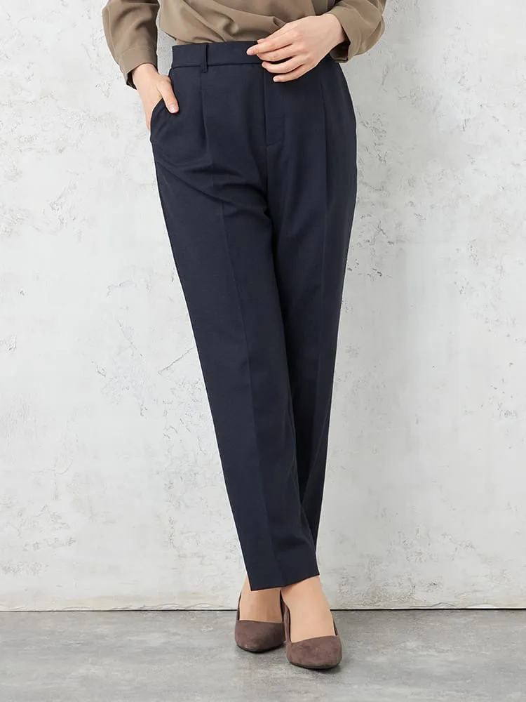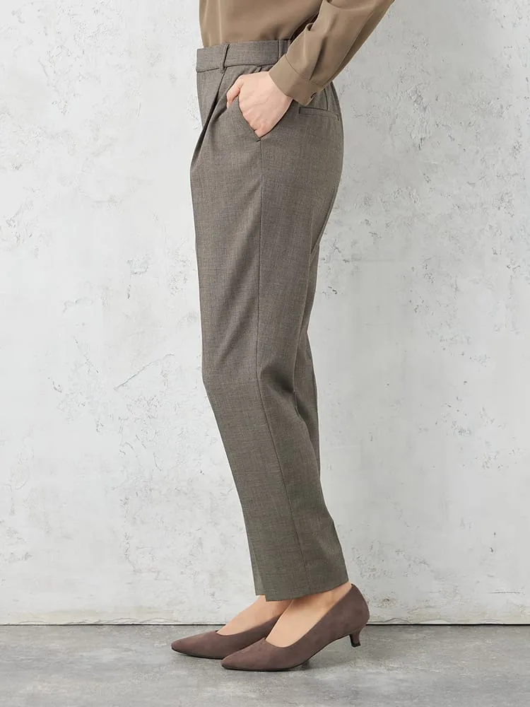 【働ラク肩ラクスーツ】ウール混テーパードパンツウォッシャブルストレッチS&MWHITE秋冬【レディース】