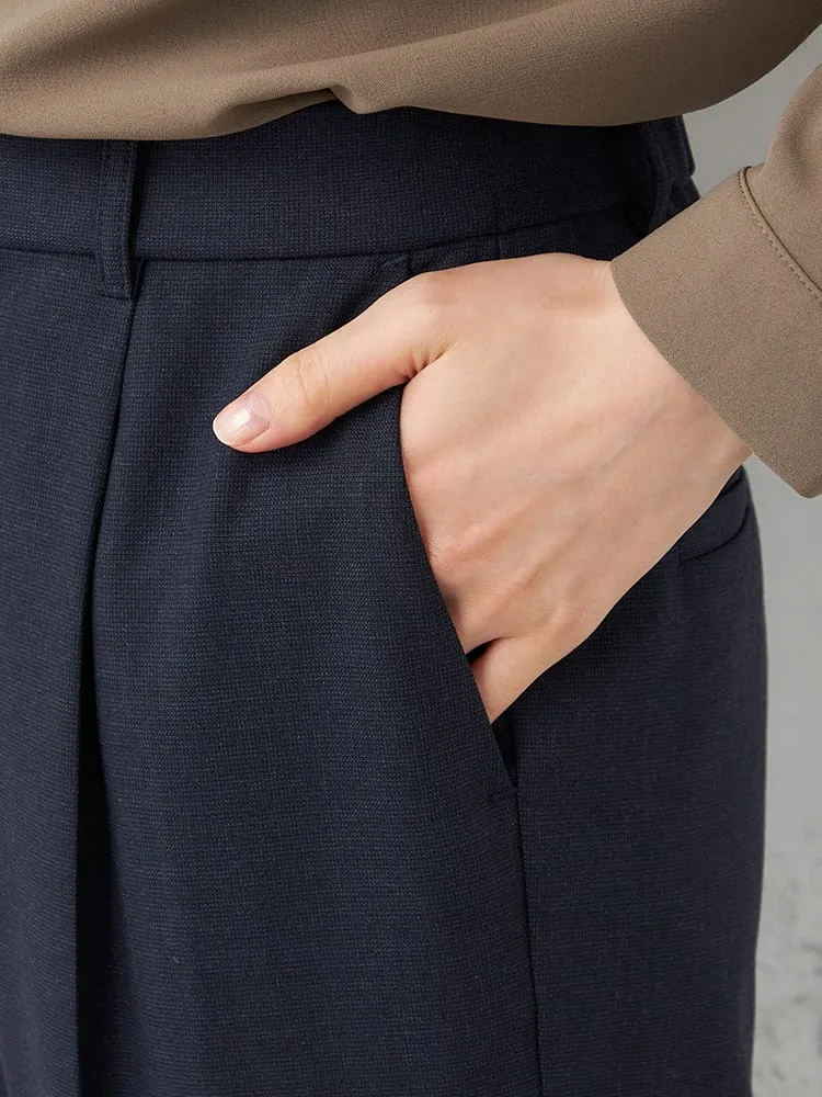 【働ラク肩ラクスーツ】ウール混 テーパードパンツ ウォッシャブル ストレッチ S&M WHITE 秋冬【レディース】