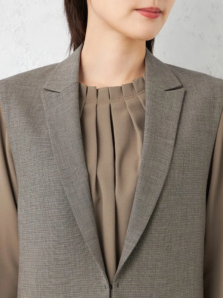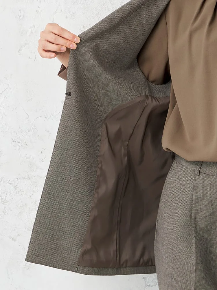 【INDIVI】キャリーマンチェックノーカラージレ【セットアップ商品有】ストレッチ通年【レディース】