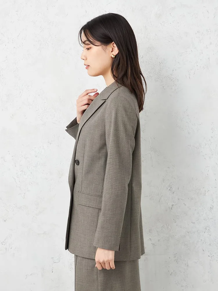 サイズ感は大きすぎず、衿も細身のすっきりとしたデザインなので着やすく、あらゆるトップスに羽織りやすいアイテムです。