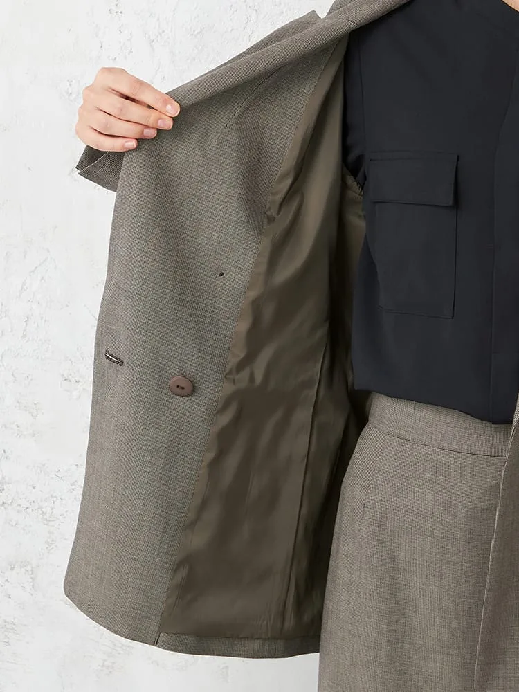 【INDIVI】 キャリーマンウール混ダブルジャケット チェック ウォッシャブル 秋冬 【レディース】(ブラウン)