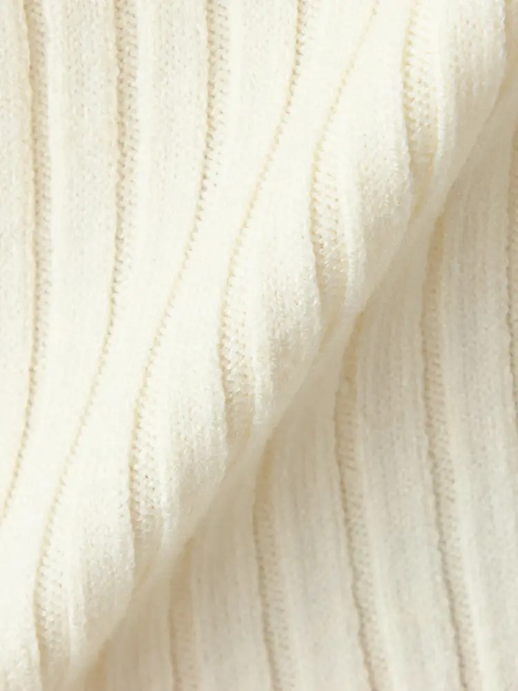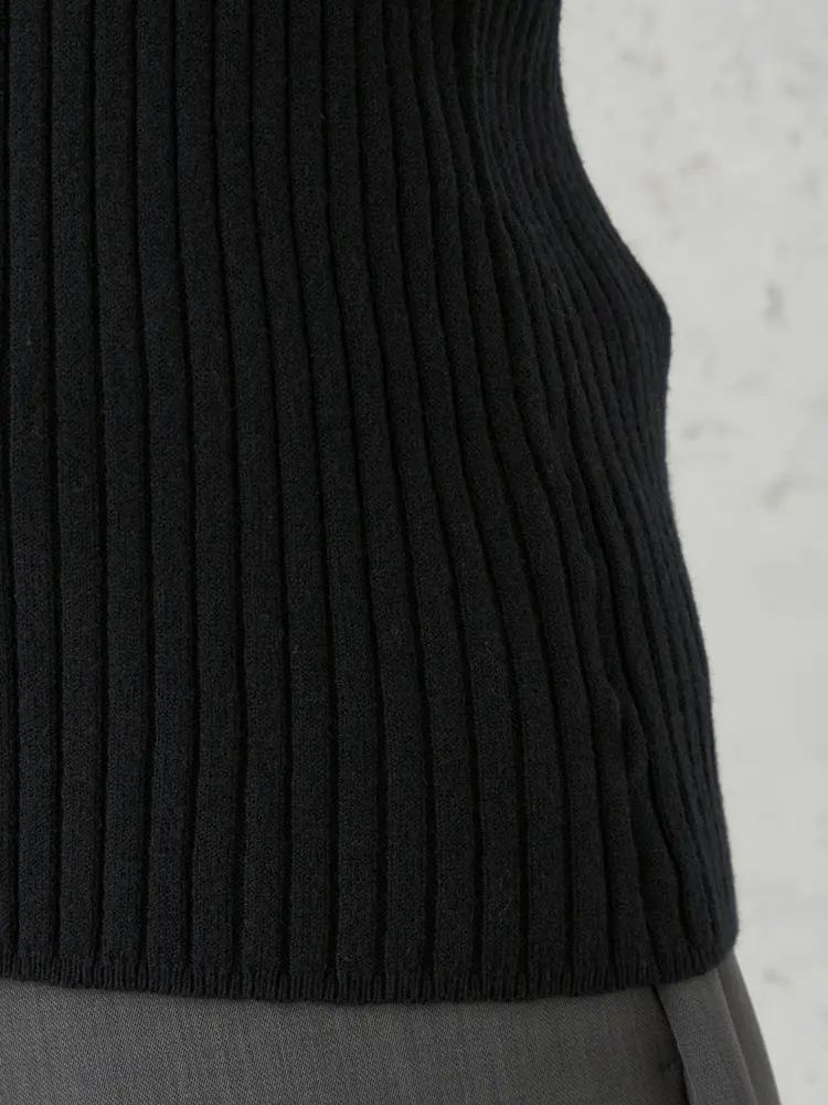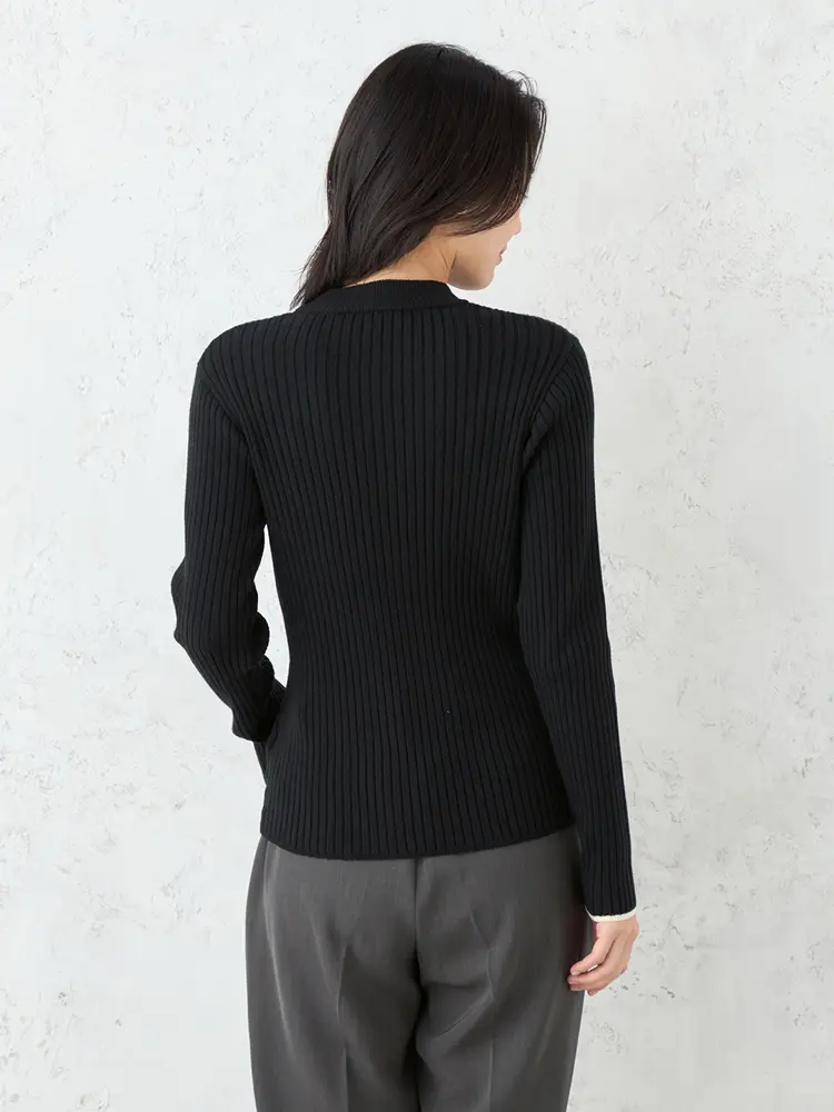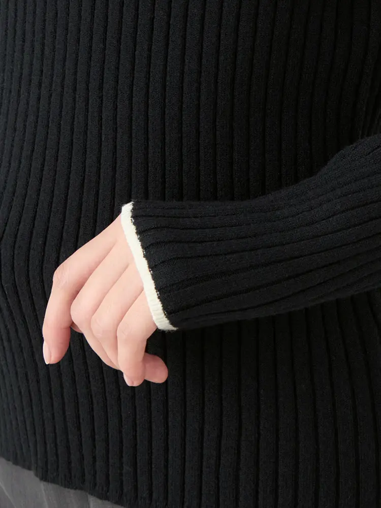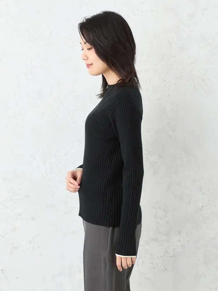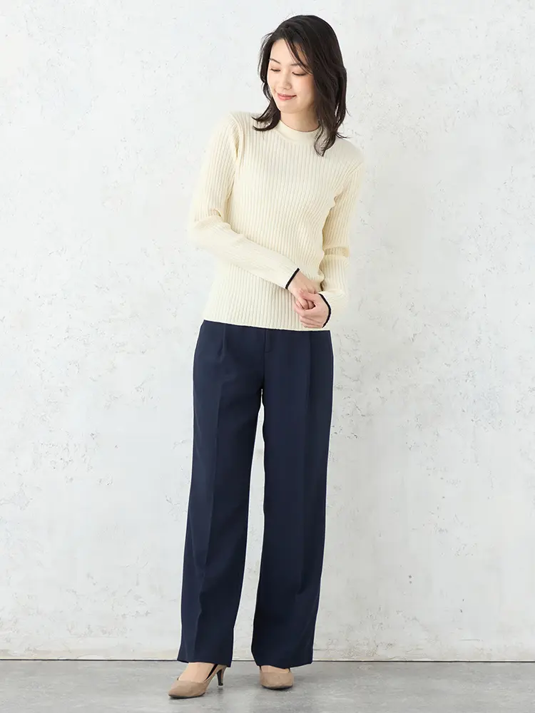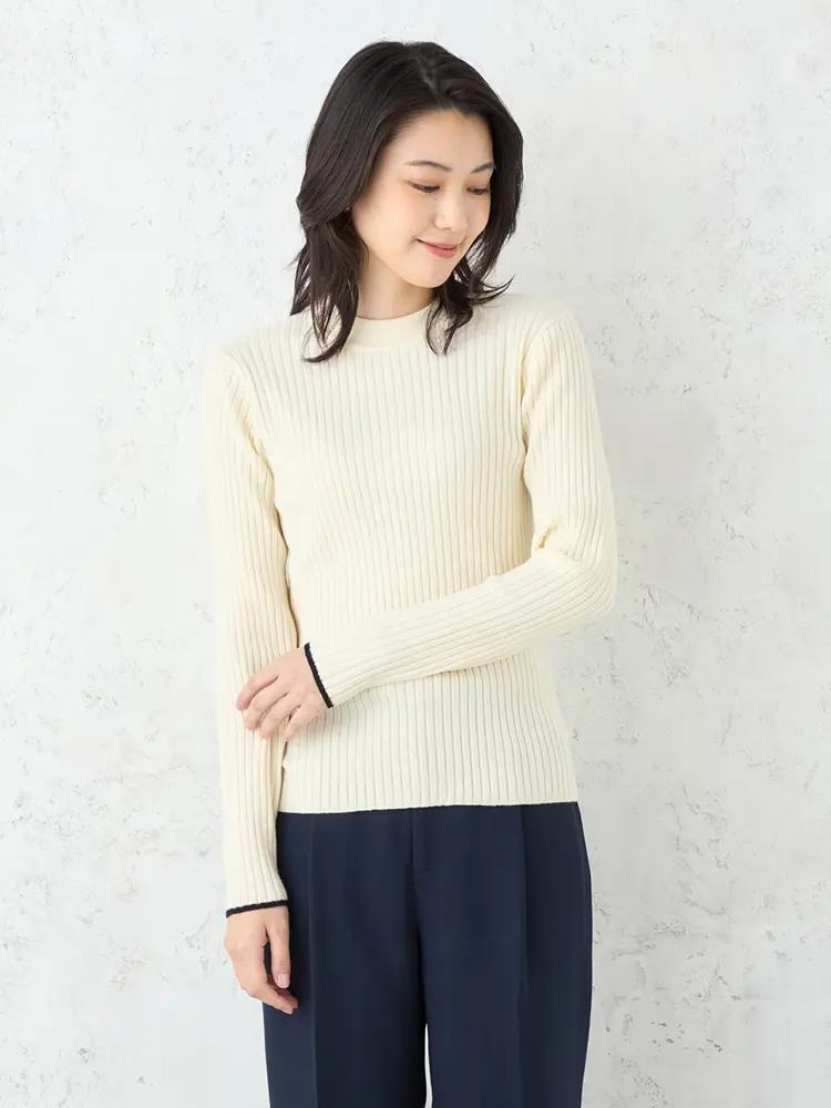 【SOFFICE】抗ピル配色ラインハイネックリブニット カットソー ウォッシャブル 放電 抗ピリング 秋冬(クリーム)
