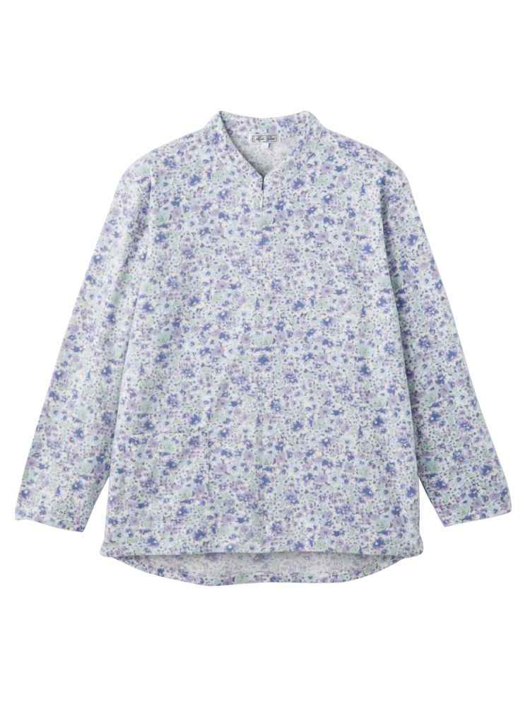 【前開き】【秋冬】ロングファスナーTシャツ15/婦人用/レディース/高齢者/シニア/名前記入欄付/前ポケット/洗濯機OL/ギフト/プレゼント【CF】