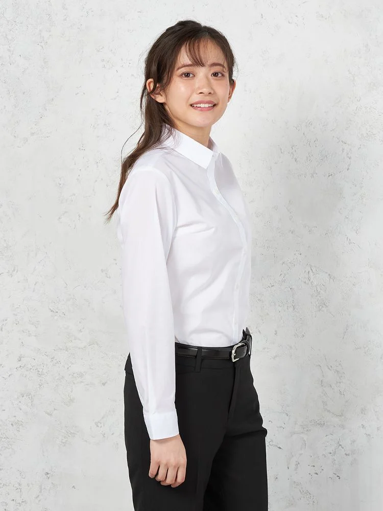 【形態安定】ブラウス長袖GraceField白ブロードスキッパーストレッチリクルート通年【レディース】