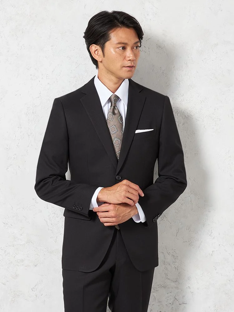 【即納】スーツ2つボタン【WEB限定】4WAYストレッチシャドウストライプブラック通年