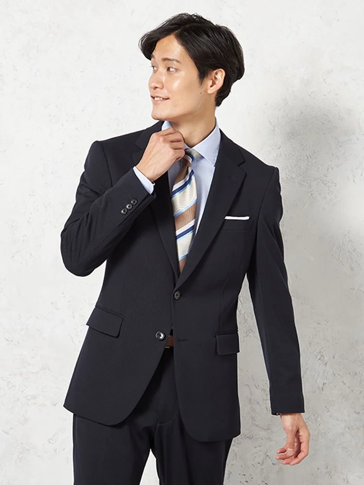 【上下ウォッシャブル】スーツ2つボタンイージーケアネイビーストライプフュージョンクラブ