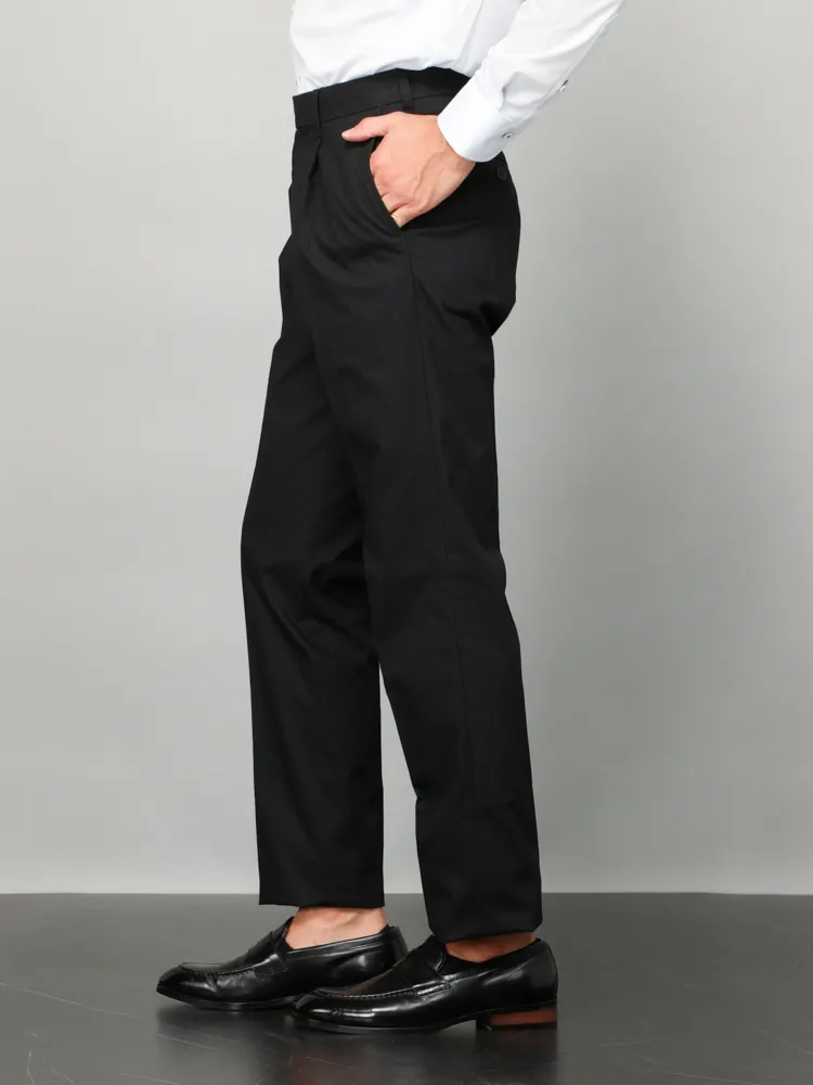 伸縮性に優れたライクラファイバーを使用した、動きやすさ抜群のタックパンツです。