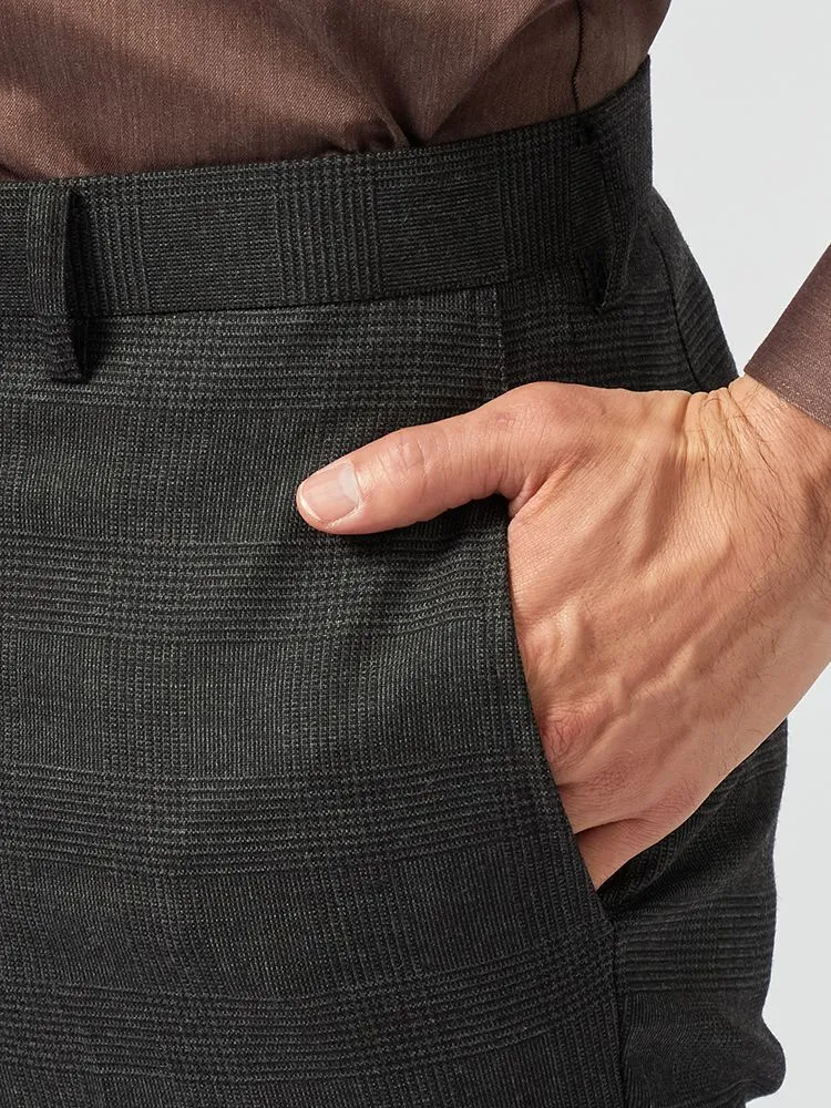 【ストレッチ】パンツノータックグレーグレンチェックTRANSCONTINENTS秋冬