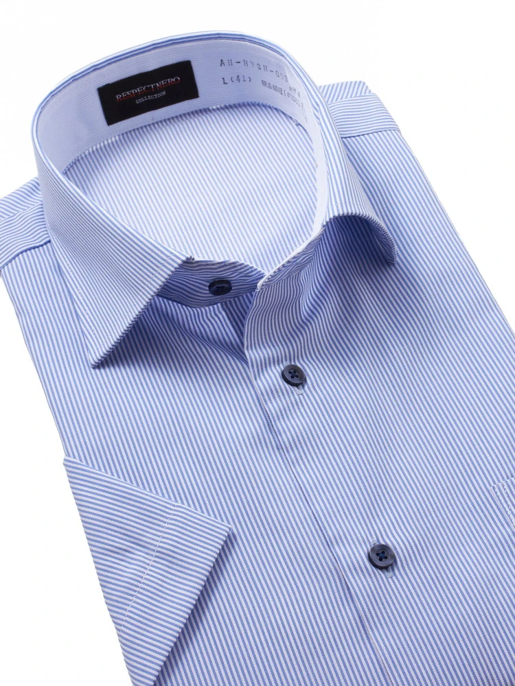 【形態安定】半袖ワイシャツカッタウェイ綿100%防汚/抗菌/防臭ロンドンストライプカンサイ・ヤマモト春夏