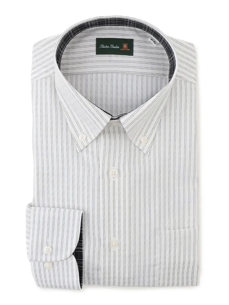 【超形態安定】長袖ワイシャツボタンダウン綿100%NEVIRON4(超形態安定ナノ加工)織柄無地リッケンバッカー通年