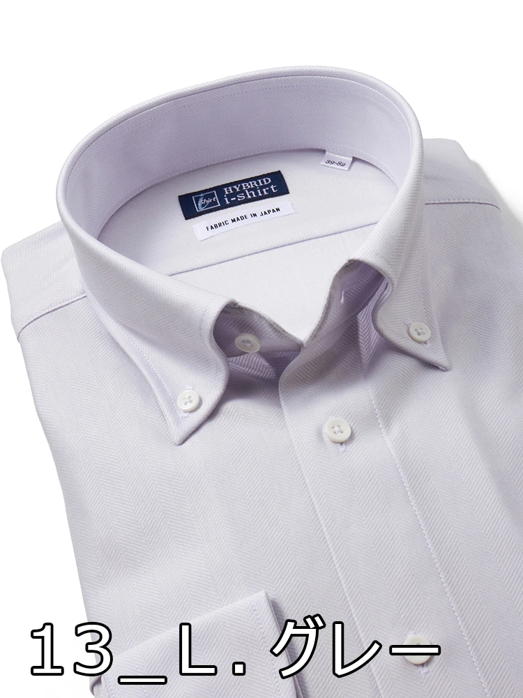 【ハイブリッドアイシャツ】長袖ワイシャツボタンダウン綿混素材形態安定千鳥i-shirt通年