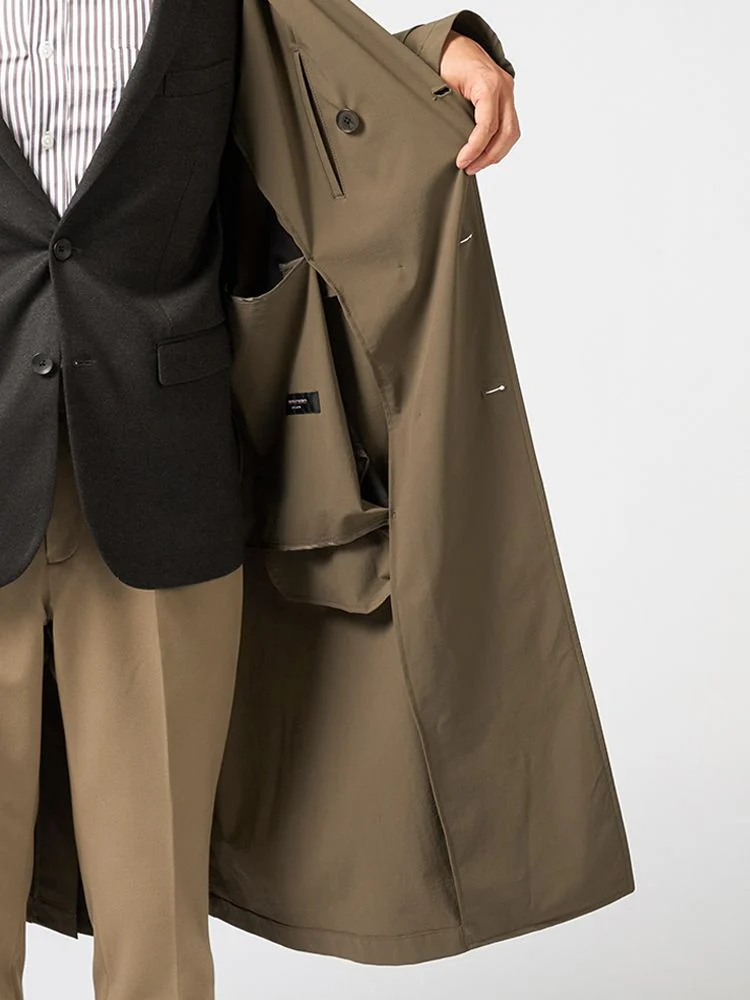 【軽量】ステンカラーコートダウンライナー付き撥水ストレッチ無地nero秋冬