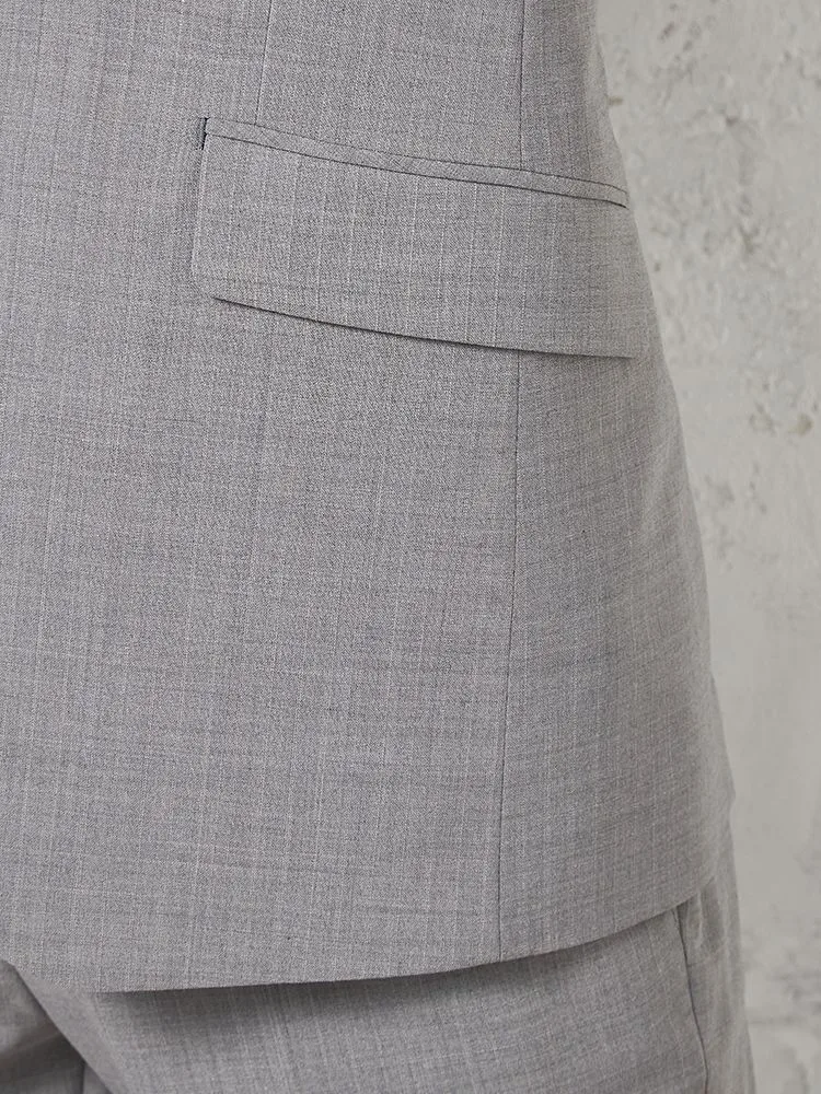 切り込みが1本のセンターベントデザインです。細身でスッキリとしたシルエットが特徴で、快適な着心地を提供します
