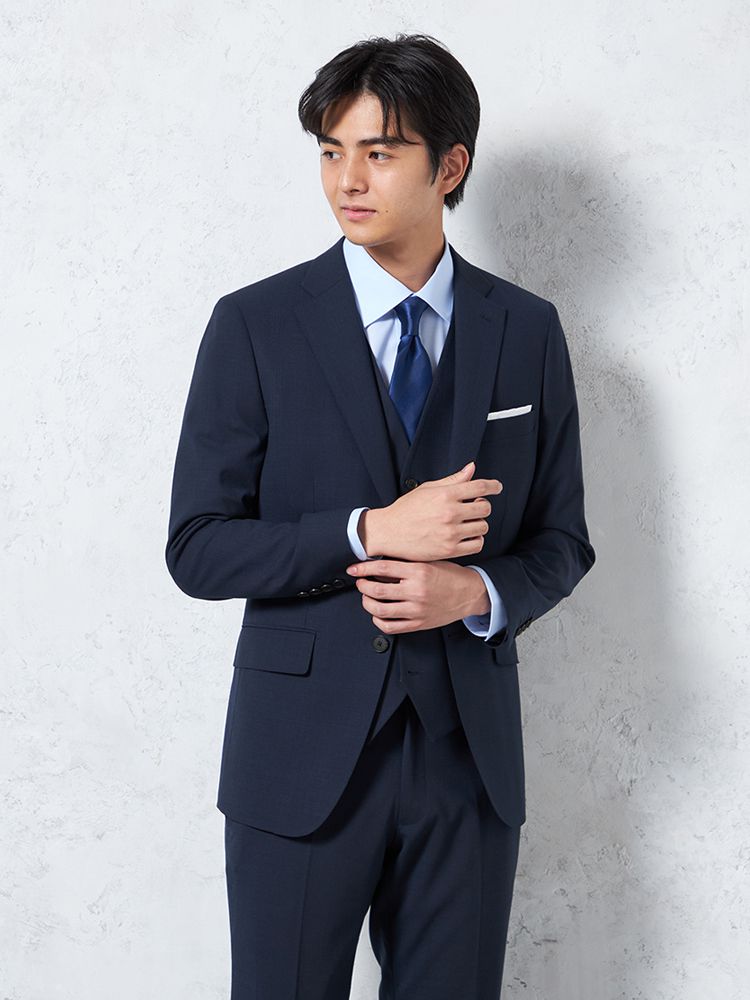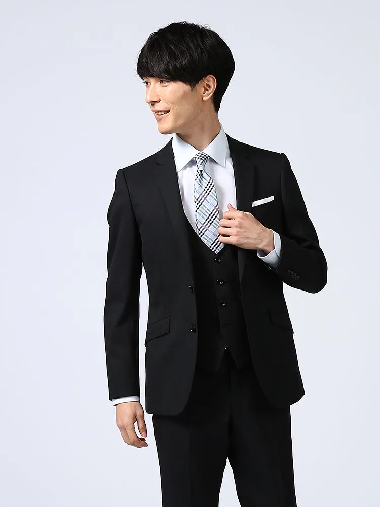 【上下ウォッシャブル】スリーピーススーツ2つボタンウール混ストレッチ・防しわ無地nero秋冬