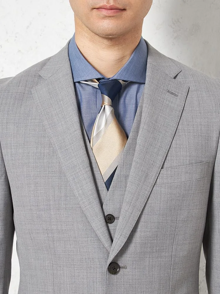 表情豊かな織地に魅せられる、上品さのある3ピーススーツです。
