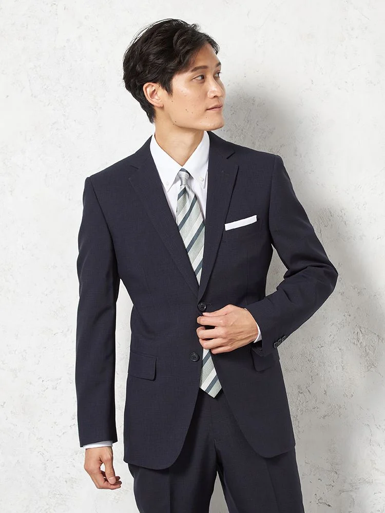 【即納】スーツ2つボタン【WEB限定】上下ウォッシャブルチェックネイビー通年