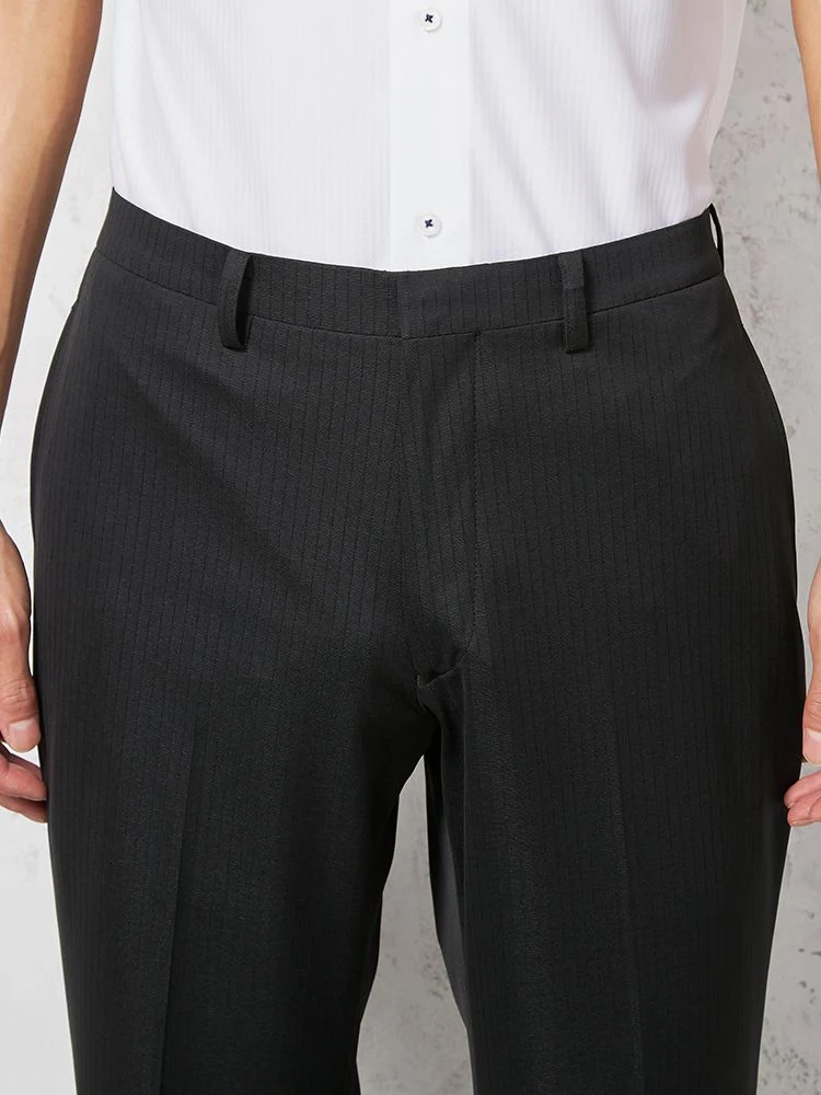 【i-Pants-アイパンツ-】バイオセンサー生地使用ウォッシャブルノータックストライプスラックスnero