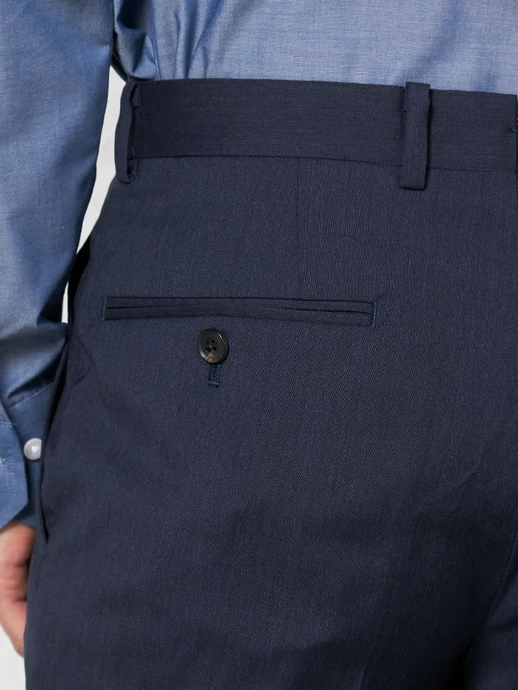 パンツの腰回りに生地の折り込みがなく、スッキリとしたシルエットを実現します。シンプルで洗練された印象を与え、すっきりとした着こなしが可能です。