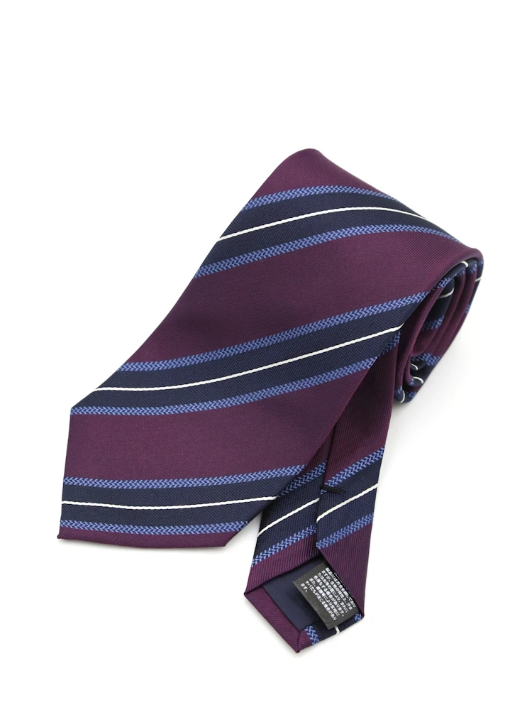 【シルク100%】ネクタイ ミディアムカラー ストライプ リッケンバッカー 秋冬(パープル)
