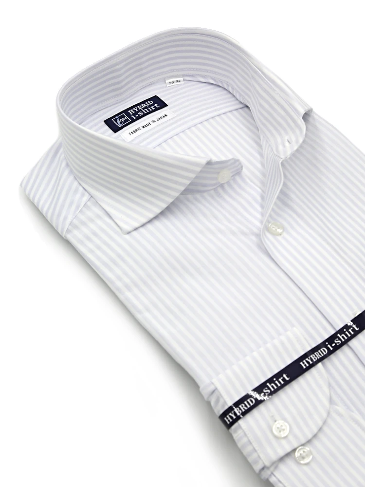【ハイブリッドアイシャツ】長袖ワイシャツセミワイド綿混素材形態安定ストライプi-shirt通年