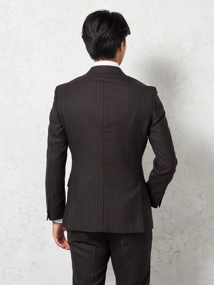 格式と華やぎを併せ持つ英国調ストライプデザインのウールスーツ。