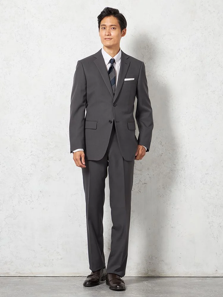 【即納】スーツ 2つボタン【WEB限定】上下ウォッシャブル ストライプ グレー 通年