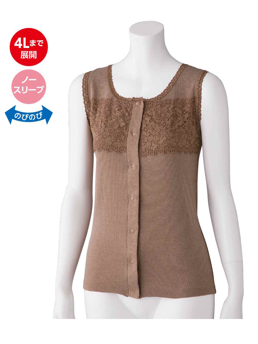 レディース フロントレースノースリーブホックインナー/婦人用/介護/前開き/肌着/秋冬用 【CF】(ワイン)