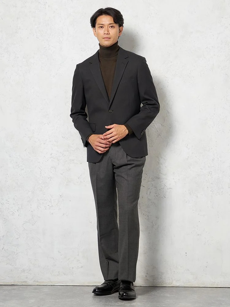 切り込みが1本のセンターベントデザインです。細身でスッキリとしたシルエットが特徴で、快適な着心地を提供します